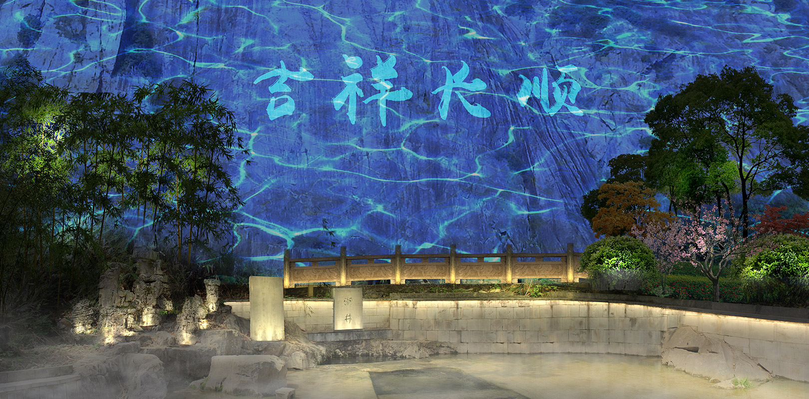整合景觀空間、獨特色調、色彩層級與總體氛圍調配燈光色彩,增強景區美感,讓景觀富含文化及情趣。