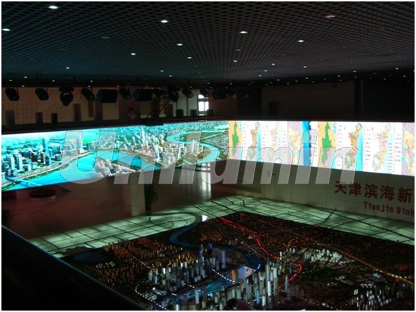 據(jù)了解,金融中心一樓大廳內(nèi)內(nèi)部結(jié)構(gòu)為一樓、二樓中心部分相通,可以站在二樓俯瞰一樓近300平方米的于家堡金融區(qū)整體沙盤模型,而此次LED顯示屏的位置則是二樓走廊外四面的墻體,主要用于播放于家堡的歷史發(fā)展足跡及未來規(guī)劃的視頻,觀眾在觀看于家堡金融區(qū)整體沙盤模型的同時,稍微抬頭就能觀看相關(guān)視頻,了解到于家堡的過去、現(xiàn)在、未來。