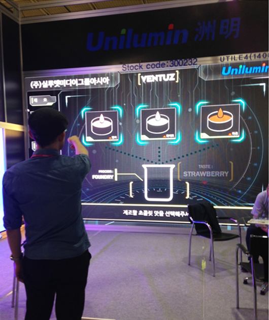 本次展出的Utile系列租賃產(chǎn)品結(jié)合了洲明科技最新的體感操控技術(shù),現(xiàn)場眾多客戶親身體驗(yàn)了在LED大屏上面凌空互動(dòng)的樂趣。想象一下,在一塊高清大屏前面只要揮揮手、動(dòng)動(dòng)腳就可以控制整個(gè)畫面,甚至玩各種新奇刺激的游戲,這種感覺才是真真切切的"Join the UHD world!"
