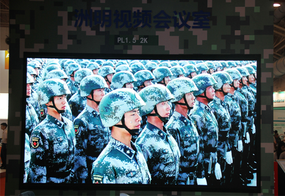 洲明科技參展的4K分辨率的UTV1.6顯示大屏實現真正無縫屏接,高清成像,適用于軍隊的指揮、作戰、監控、演習、訓練、閱兵,洲明科技此次展出針對國防信息化產品,具有無縫、高清、低亮高灰、高可靠性、低功耗等特點,現場真實模擬軍事化信息指揮中心,以及洲明Upanel1.5組成的標準2K顯示屏作為軍事指揮中心視頻會議系統的顯示終端設備。