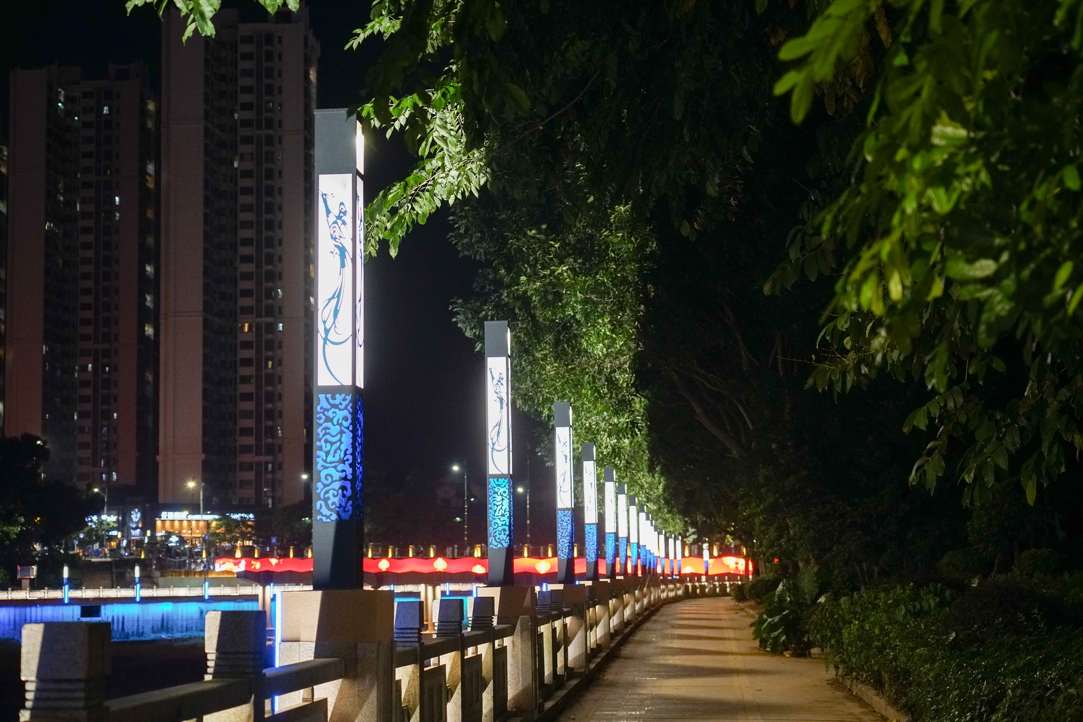 沿河公園之外,石馬河兩岸步道也是鳳崗市民極為熱衷的休閑場所。為營造更好的燈光環(huán)境,洲明在石馬河中心段第二階段,也將對此處文創(chuàng)燈光進行精心打造。