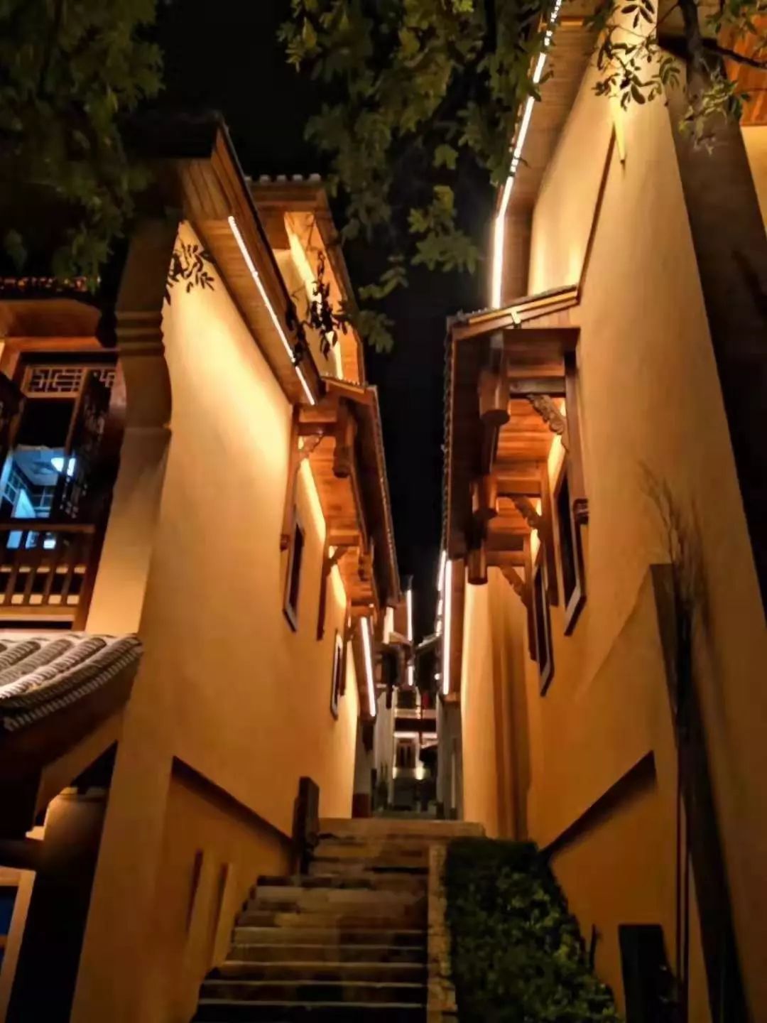 精致的木雕和房屋飛揚的翹腳構(gòu)成了典型的具有沅湘特色的江南民居圖。“人向階梯時上下,屋隨山勢自高低。”在高低錯落、左拐右彎、曲折蜿蜒中,可享受到音樂般起伏的節(jié)奏。溫暖的燈光描繪出一副明清民國市井生活的風情畫。