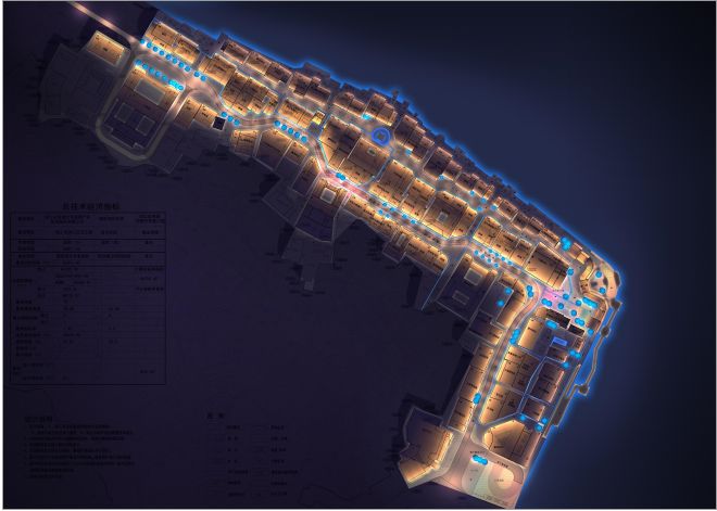 本案的照明設(shè)計借用連綿的建筑頂部燈光和沿江景觀燈光來表達山水與建筑、景觀的關(guān)系,借以表現(xiàn)洪江古商城的“山為骨架、水為血脈”的構(gòu)架。以“光影流轉(zhuǎn)洪江美,古韻湘西洪商情”為主題,凝練洪江獨有的洪商文化內(nèi)涵,沿襲洪江古建筑風貌,打造具有洪商旅游特色的夜間景色。