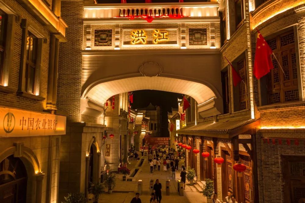 濃墨重彩的燈光表現(xiàn)手法使得街區(qū)商業(yè)氣氛瞬間活躍。古色古香的藏青墻瓦,略顯滄桑的青石板路,雕琢精美的復(fù)古建筑……漫步在“煙雨洪江”,仿佛穿越時光,感受到這里當年“商賈駢集、貨財輻輳”的盛況。