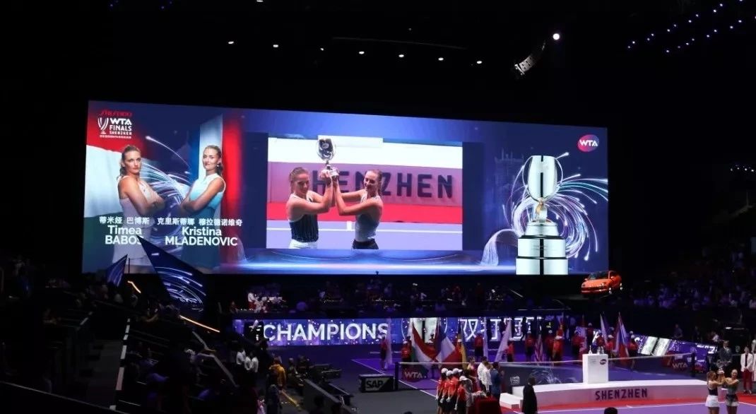 洲明體育為WTA網(wǎng)球年終總決賽提供了總面積超過700平米的高清顯示屏