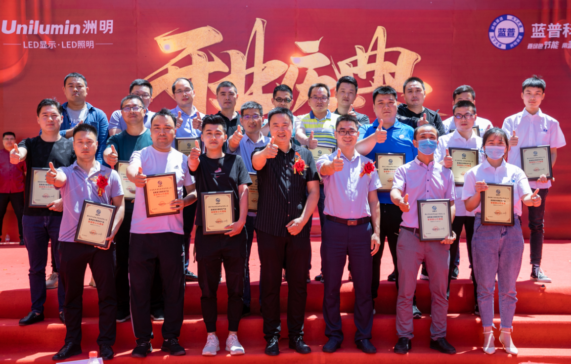 慶典的最后,洲明相關(guān)領(lǐng)導(dǎo)為河南區(qū)域洲明分銷28家二級(jí)經(jīng)銷商以及藍(lán)普科技24家核心經(jīng)銷商進(jìn)行了授牌。在熱烈的氣氛中,與會(huì)嘉賓合影留念,開業(yè)慶典就此圓滿結(jié)束。