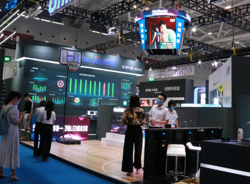 洲明還在展位特別設(shè)置了智慧會議、智慧體育場景,通過身臨其境的現(xiàn)場體驗,為觀眾帶來會議大屏和手機端小屏的實時視頻會議交互新體驗,以及集產(chǎn)品、顯控方案、音視頻燈光和管理控制于一體的智慧體育解決方案。此外,洲明UMini顯示屏、透明屏、智慧桿、節(jié)能戶外顯示屏等創(chuàng)新成果,也得到了現(xiàn)場觀眾的高度關(guān)注。