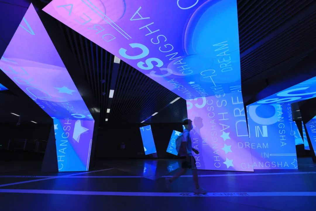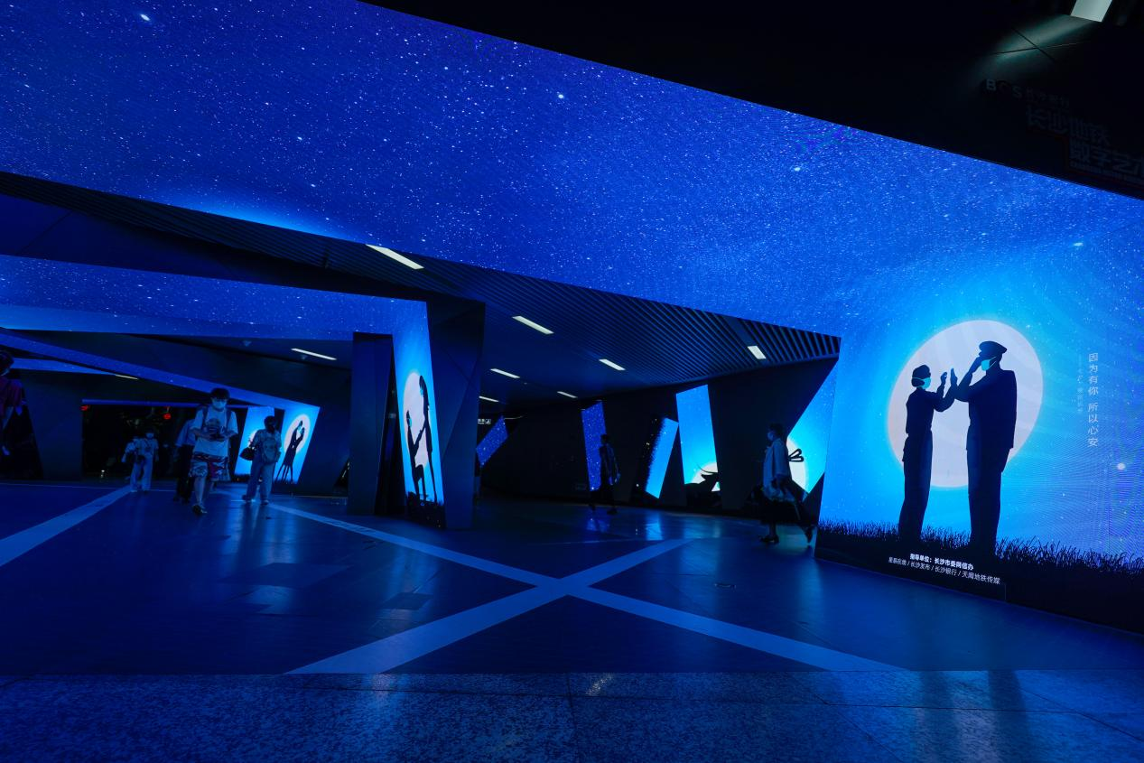 這個項目,就是長沙地鐵數字藝術館,而項目所用的各式創意屏體、藝術裝置,則全部由洲明集團藍普打造!
