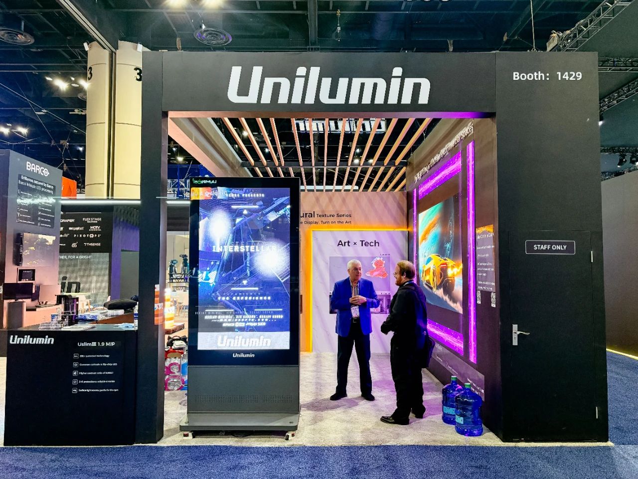 在“洲明”主展位,UpanelⅡ 1.5 MIP巨屏以卓越畫質贏得廣泛關注:P1.5點間距帶來無顆粒感顯示體驗,搭載自研EBL+技術,實現12000:1對比度、7680Hz刷新率、240Hz高幀頻,畫質深邃細膩,細節纖毫畢現。更采用像素級分光混bin技術,保障99%色彩一致性,結合160°超寬視角,畫面表現無死角。