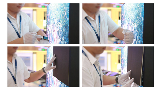 當用戶進行智能維護時,無需專業工程師,無需大的磁鐵吸,也無需觸碰模組,只需將觸發工具靠近屏體輕輕感應一下,模組自動彈出,10秒鐘快速更換模組。
