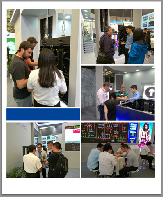 ○首個智能小間距LED顯示屏UHQ系列。現(xiàn)場以電視機形態(tài)展示,非接觸式完全前維護方式,10秒快速更換模組。