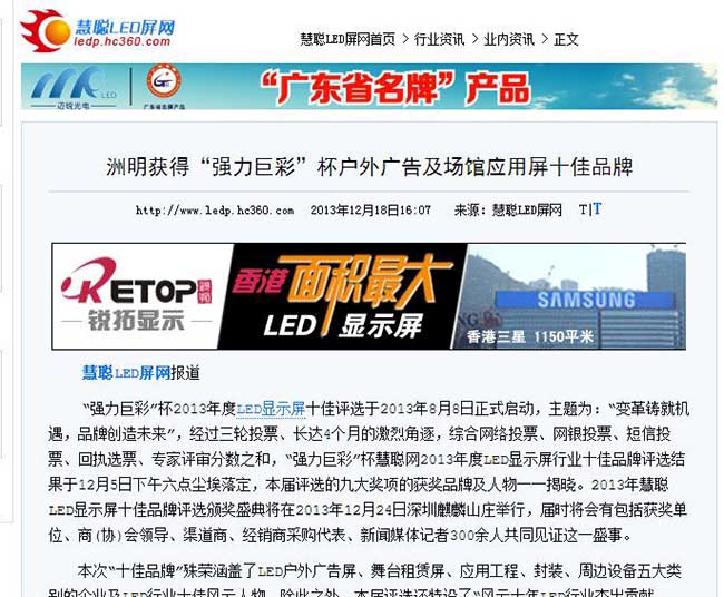 http://www.ledp.hc360.com2013年12月18日 來源:慧聰LED屏網