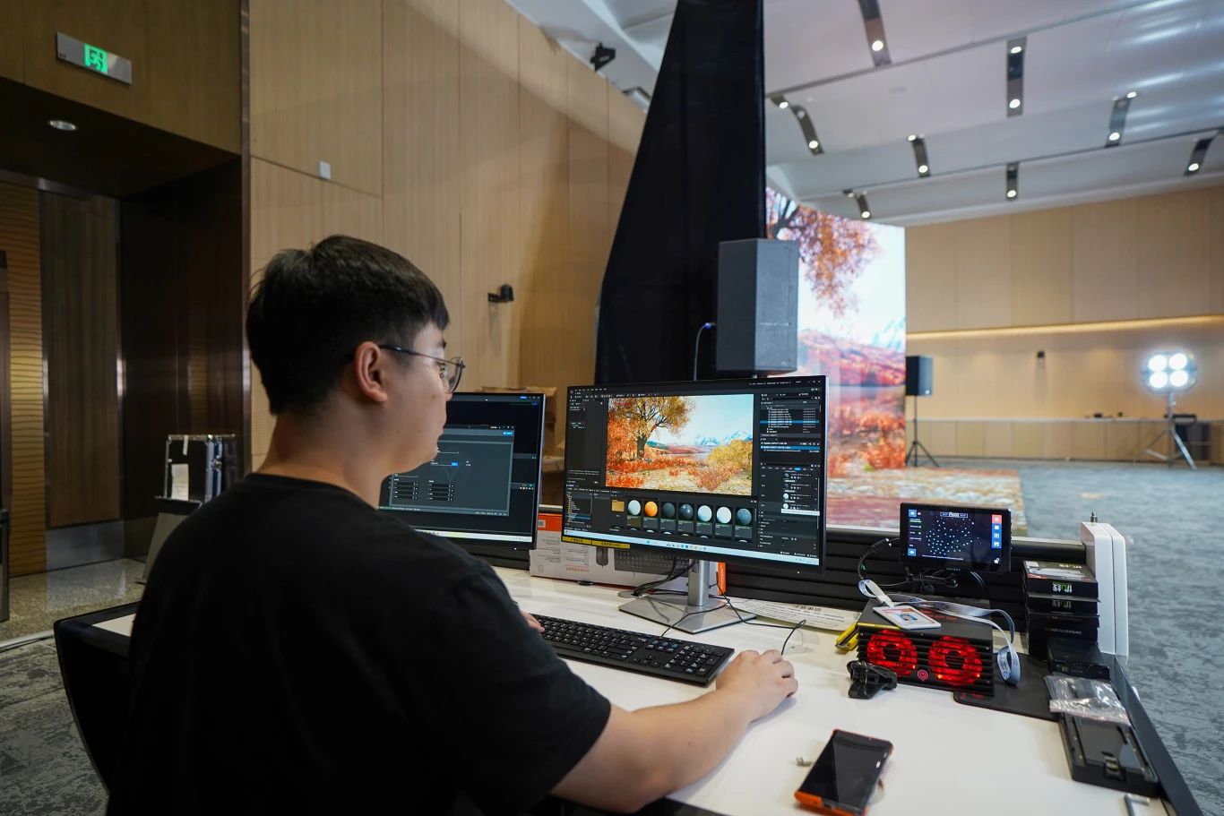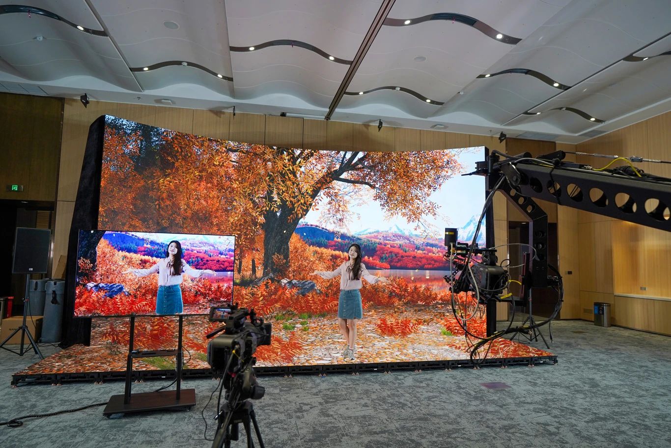 現(xiàn)場引人注目的還有智能燈光矩陣系統(tǒng),通過AI算法自動(dòng)匹配場景色溫。尖端硬件的有機(jī)整合,讓XR拍攝平臺(tái)成為連接物理與數(shù)字世界的科技奇點(diǎn)。